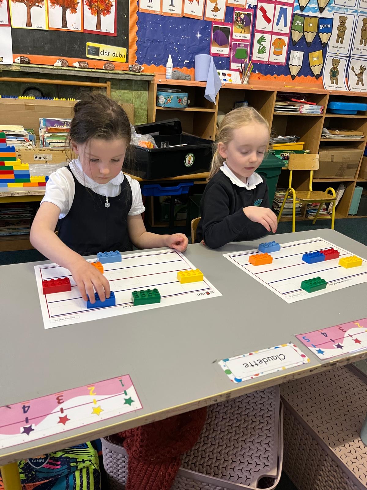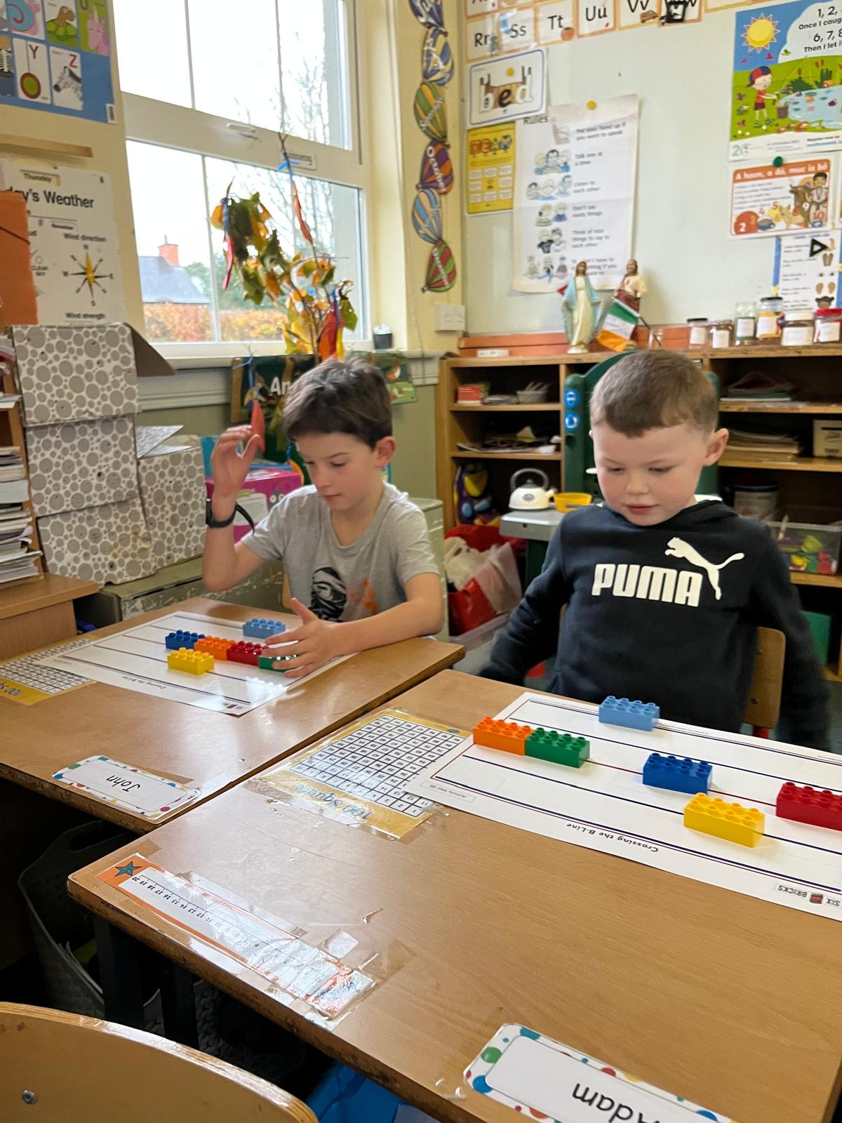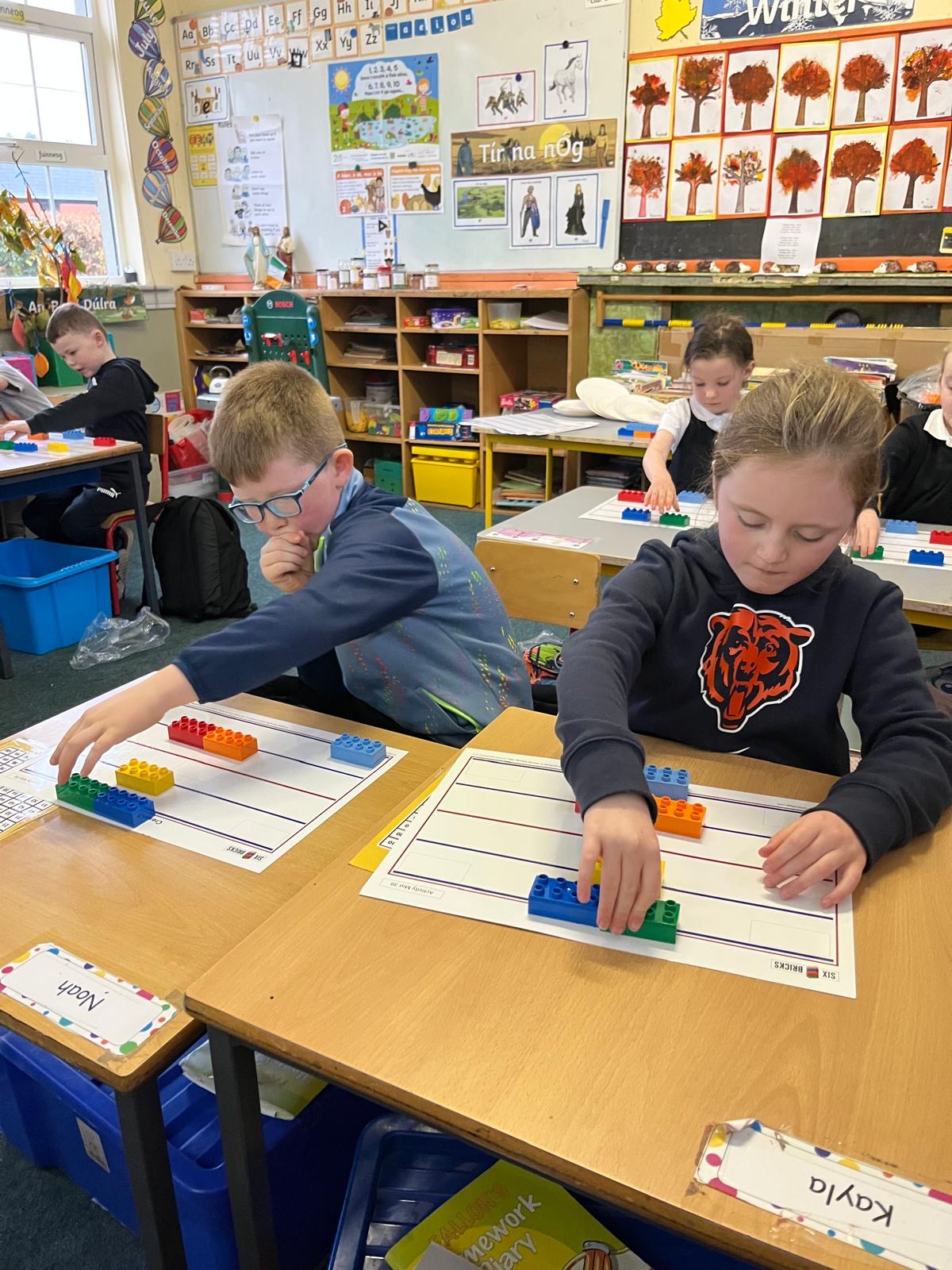 Pupils in the junior room working on a STEM project during Science Week 2025.