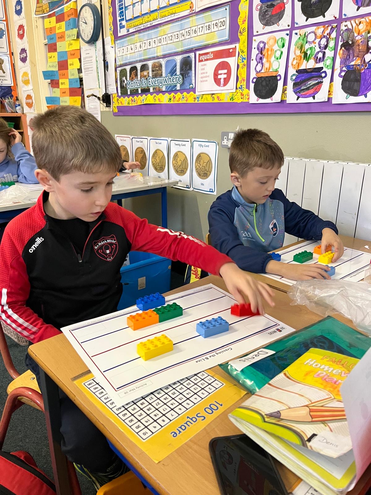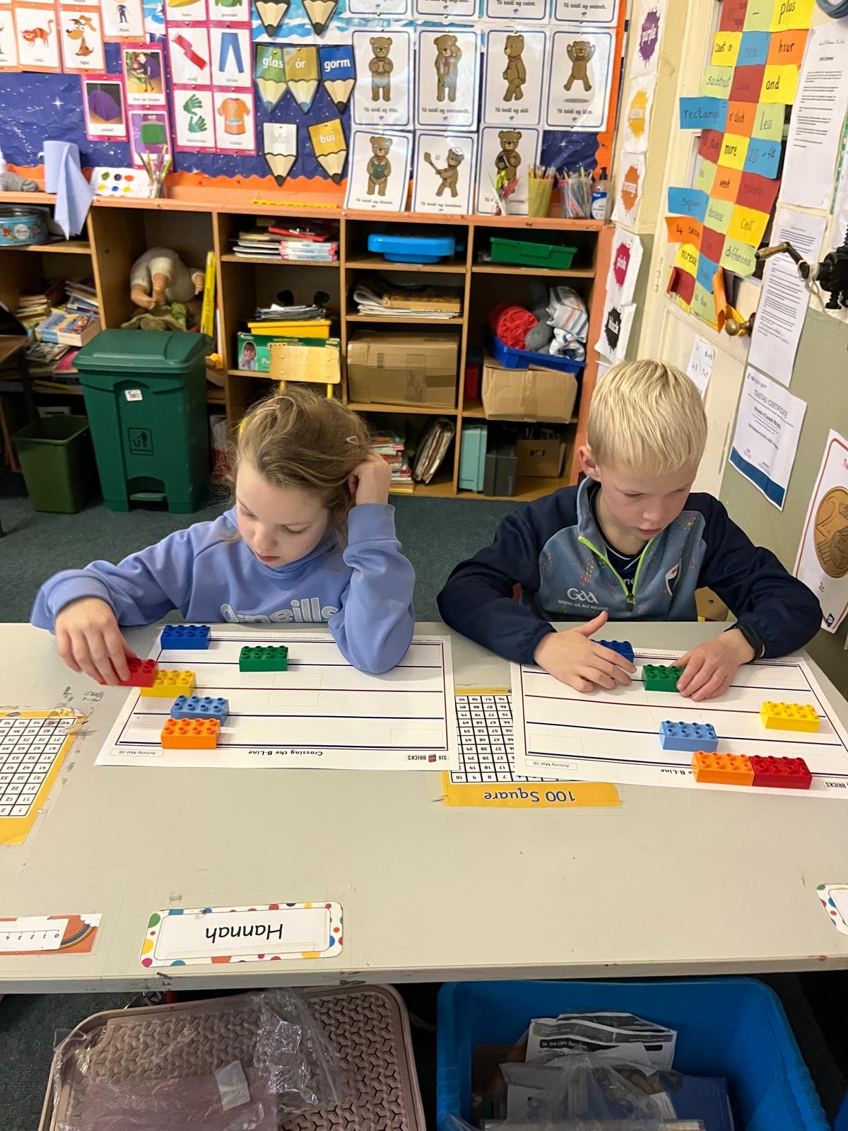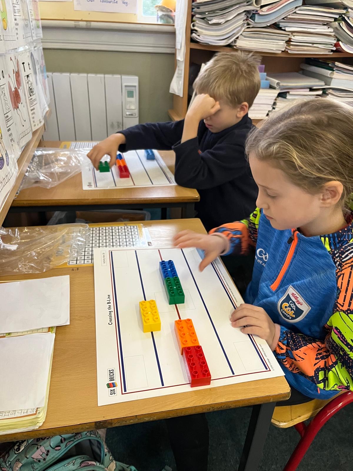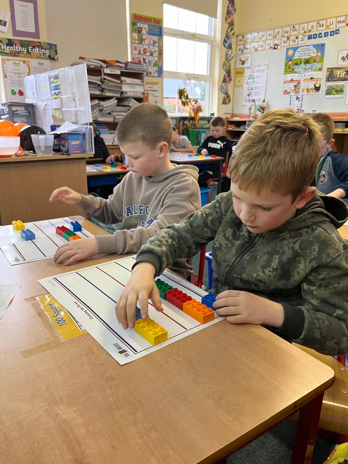 Pupils in the junior room working on a STEM project during Science Week 2025.