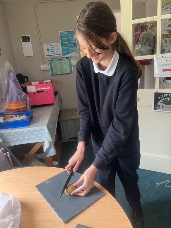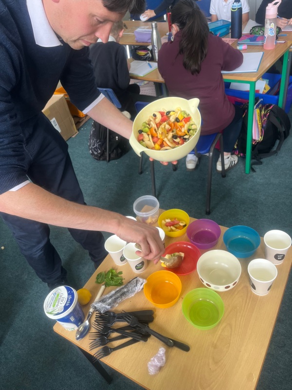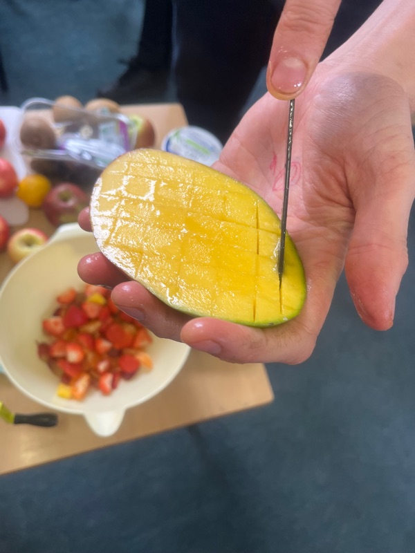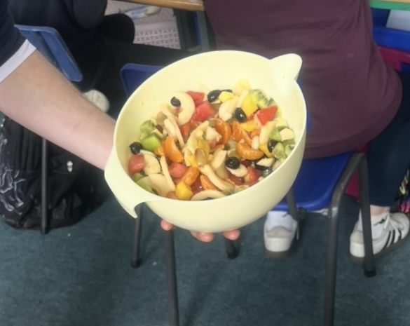 Each pupil brought in a different type of fruit to make the fruit salad, it was a bit like the old story of “stone soup”! All our favourite fruits were there with a few exotic ones like kiwi, watermelon and mango.