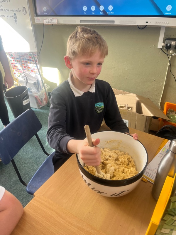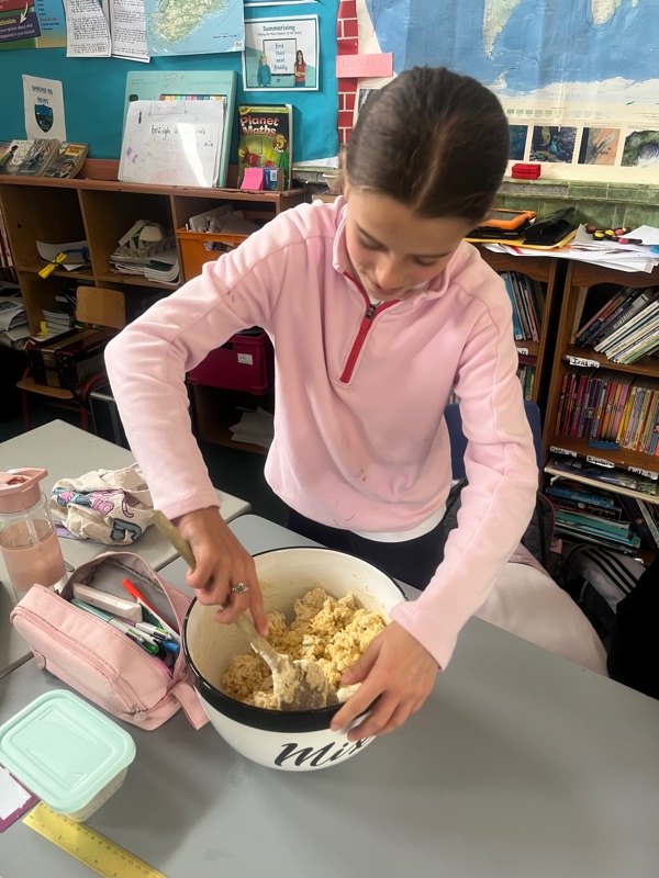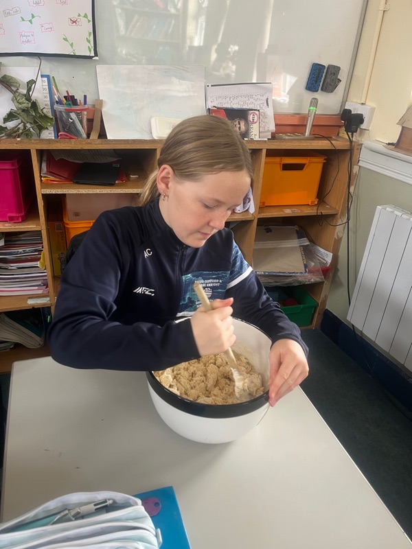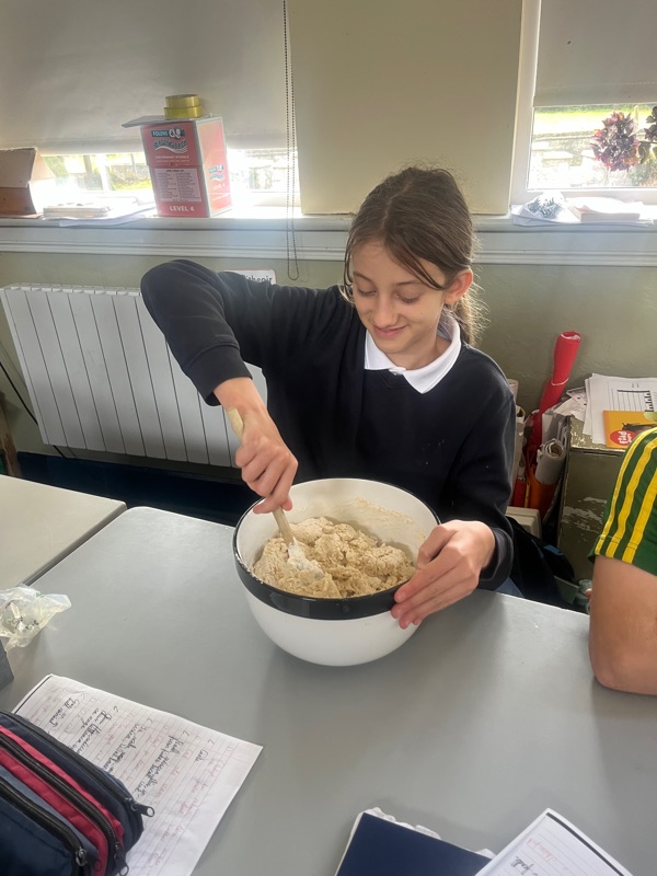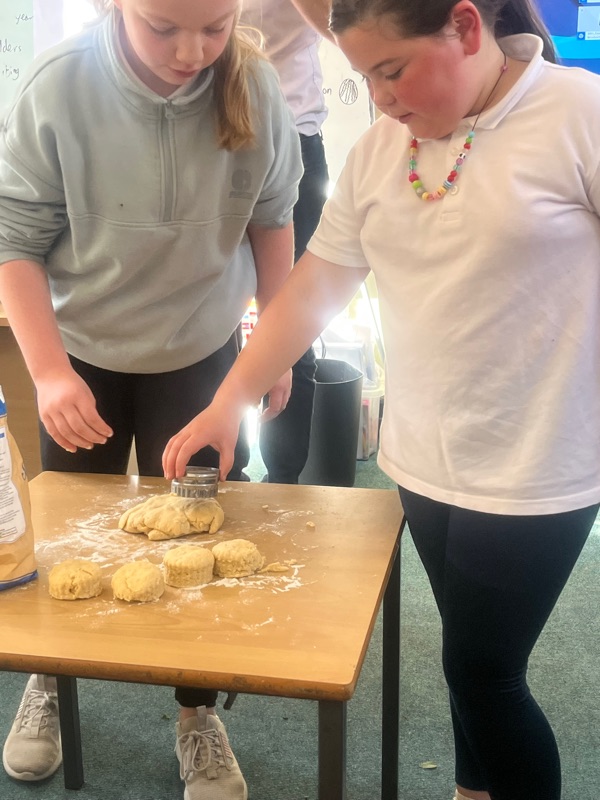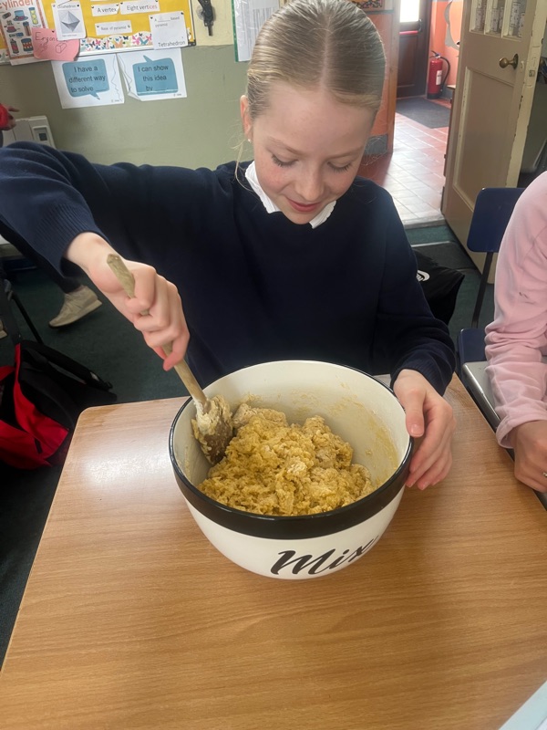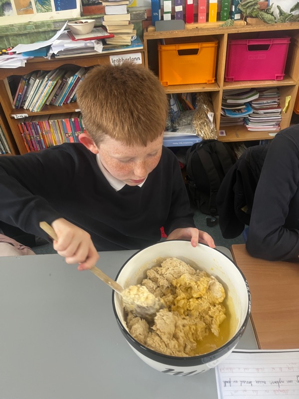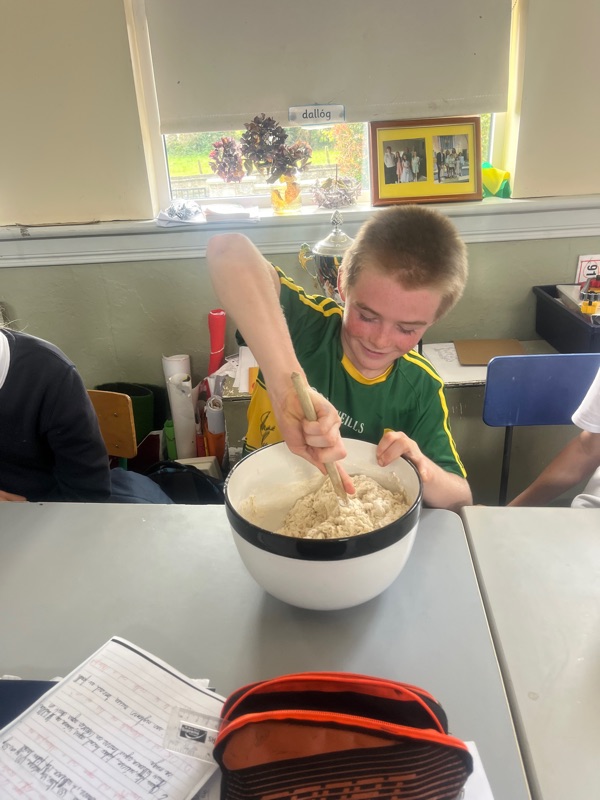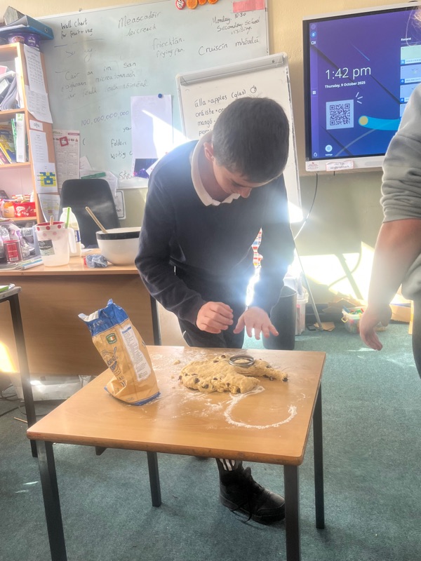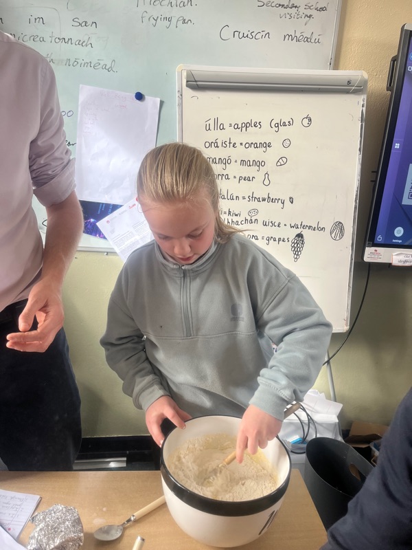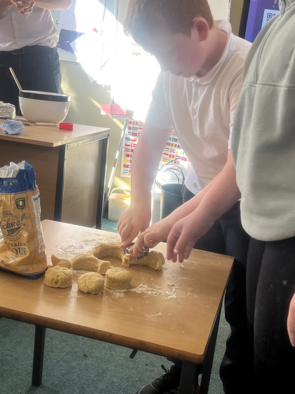 We also made scones. Clodagh and Mr.Coakley made the batter and the rest of the room cut out the scones with the scone cutter. Then we cooked them next door in Kaitlin’s. It was fun. Mr Coakley gave us all a scone each. We all loved them. We hope we can do it again. Clodagh has typed the recipe and we are looking forward to trying them at home.