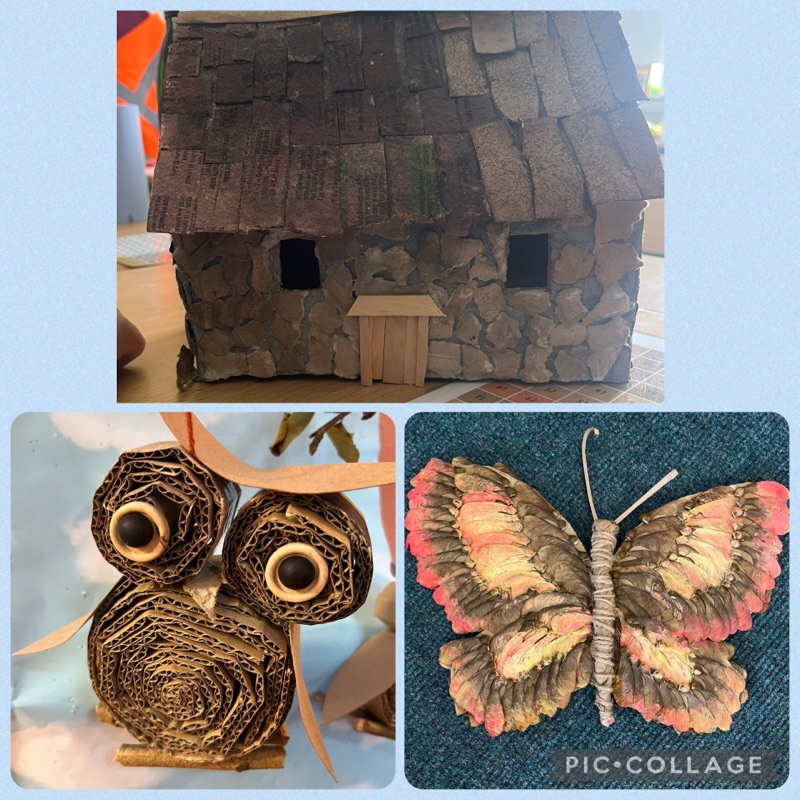 The results were amazing.Butterflies, mushrooms and owls were created by the junior pupils whilst beautiful stone cottages were built and decorated by the senior pupils.