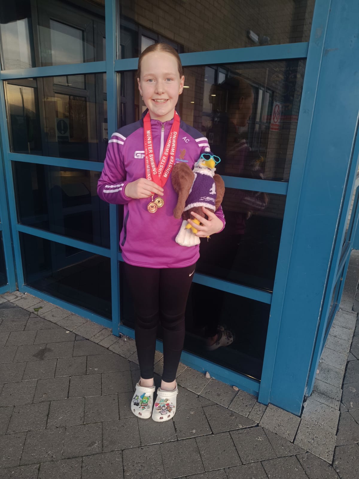 Well done to Aoibhinn who took part in the Munster Future Challenger Gala in Tralee last Sunday. She won 1st in the 100m butterfly and her team came 3rd in their relay.