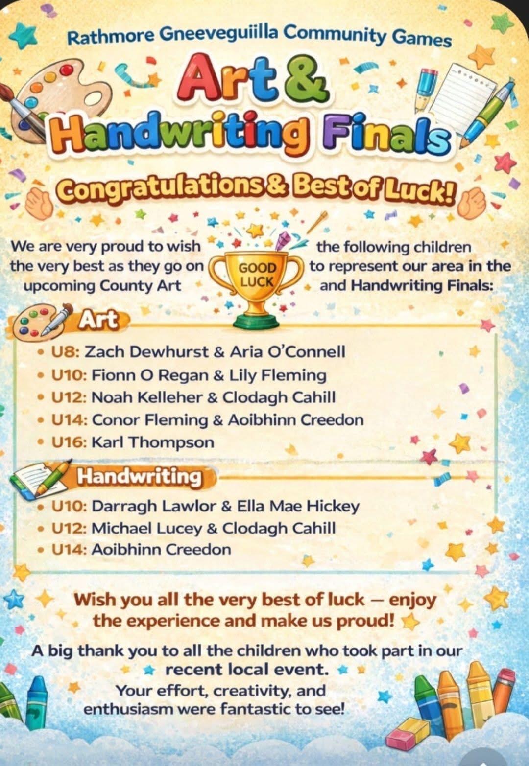 Best of luck in the County Finals.