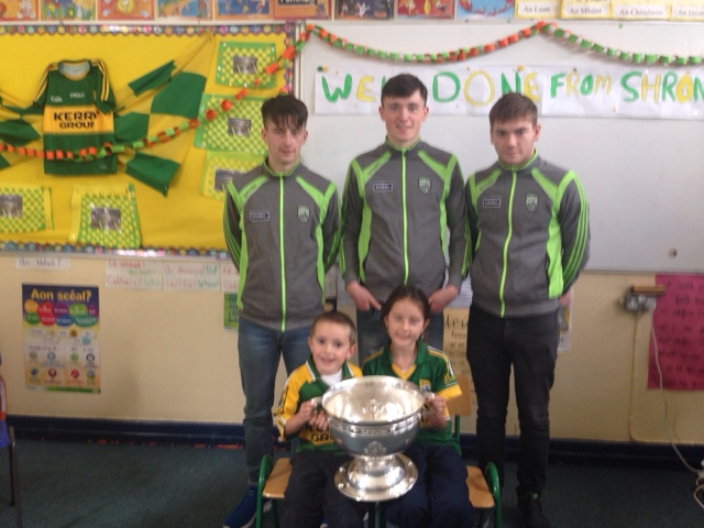 On Friday 22nd September both the staff and the pupils were delighted to welcome some of the victorious Kerry Minor team to Shrone N.S.