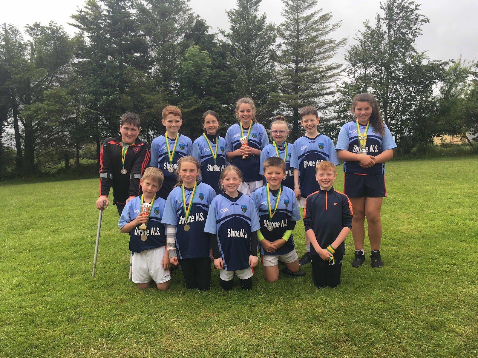 Shrone faced Fybough NS in the final Shrone started well and were a point up after 4 minutes however some outstanding play from Fybough saw them take a two goal lead before half time. Shrone showed tremendous spirit with some outstanding individual play from Niamh Cremin and Aidan Mc Auliffe. Aoife Cremin took up a man marking task on Fyboughs outstanding midfield player and certainly limited his impact on the game.With time running out Shrone went in search of goals and Riain Murphy found the net from a 13 meter free. Marc Cremin pulled off an incredible save on the other end of the field but took a heavy knock as he did so Ava Twomey came in and did a marvellous job in goals not letting a single ball past her and her kick outs always found their mark. Shrone certainly had chances to win the game but stout defending from Fybough prevented a Shrone comeback and the final score read Fybough 2-6 Shrone 1-3.